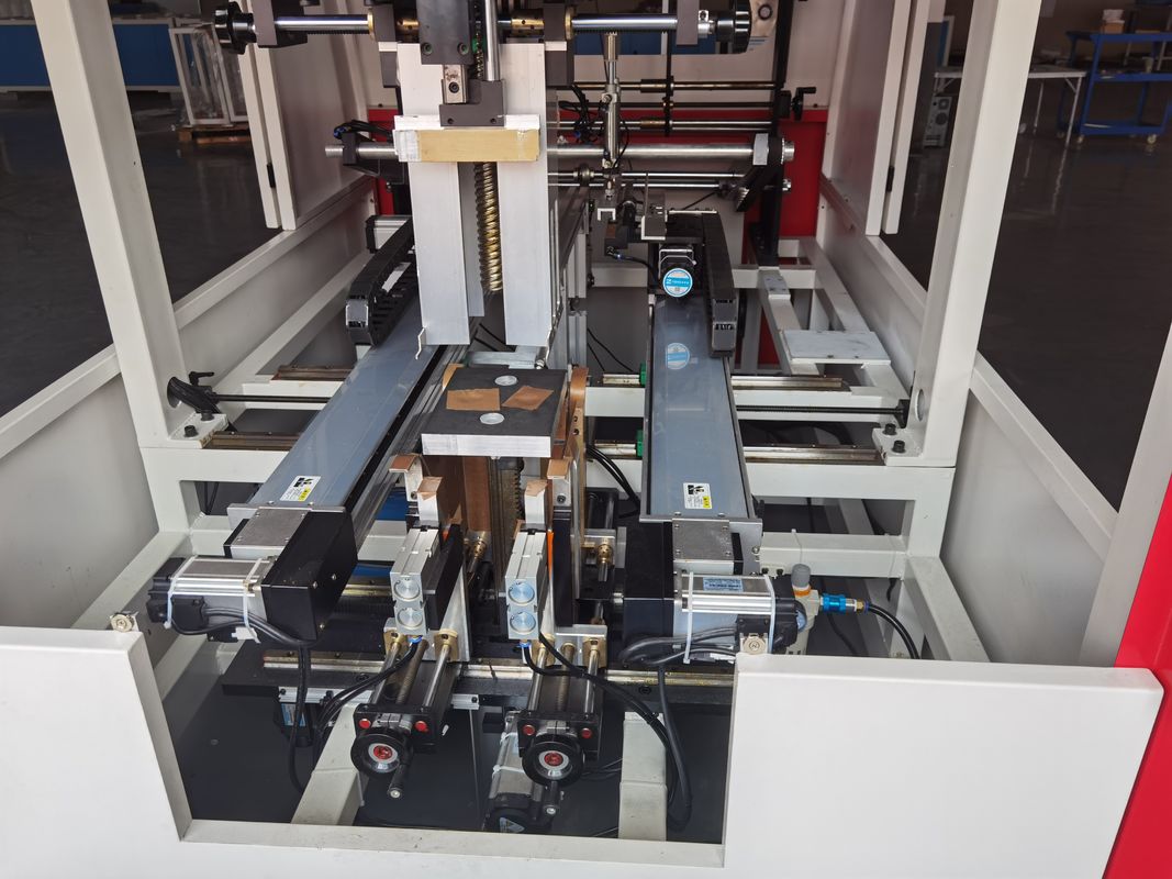 De machine wordt bestuurd door een PLC en bediend via een touchscreen.Breed gebruikt in middelgrote verpakkingen voor schoenenHet bedrijf kan, indien nodig, de productie van deksel en bodembokken tegelijkertijd realiseren.
