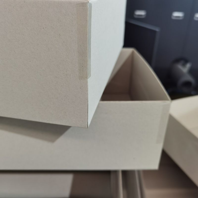 Hoek plakken voor stijve doos, Grijs bord hoek plakken